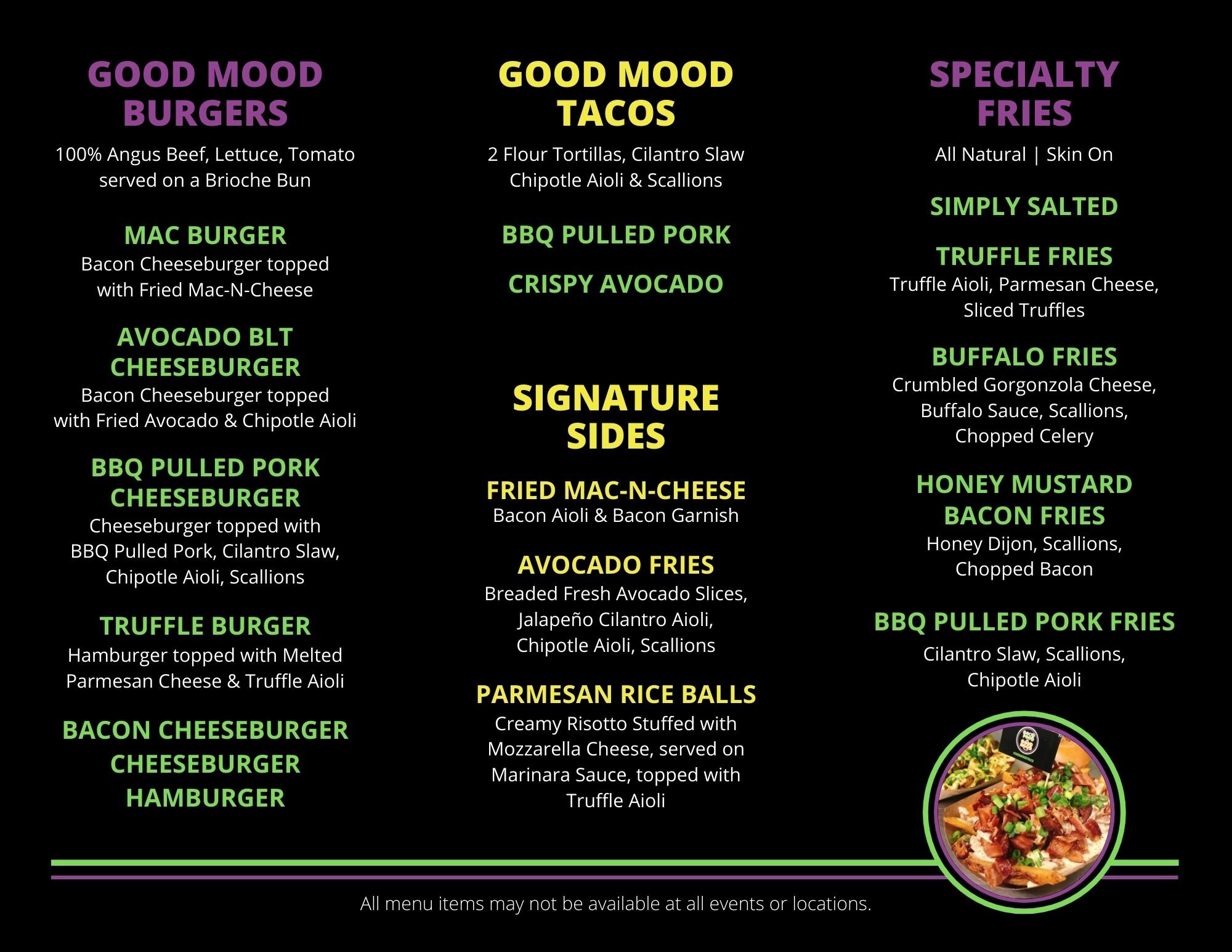 Good Mood Truck catering is the perfect choice for all kinds of celebrations! Whether it’s a wedding, birthday party, corporate event, school function, festival, or a community gathering, we bring the fun and flavor to your special occasion. With our versatile menu, we’re here to make every event a deliciously memorable one!